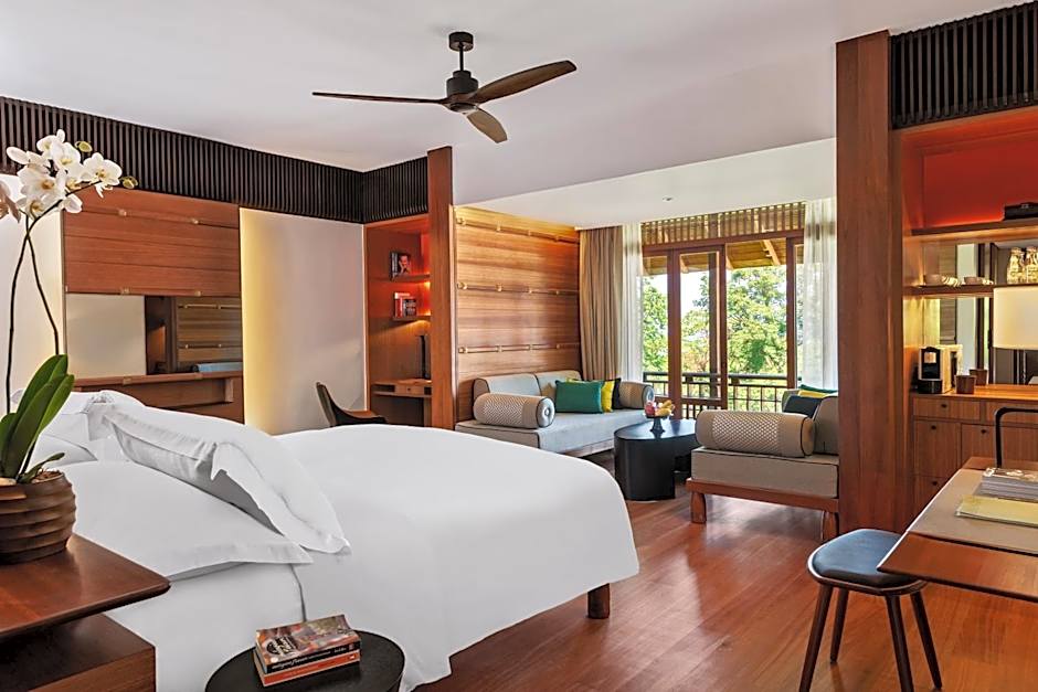 On-site highlights include a private pool, spa and wellness packages, and direct access to a private beach along with an outdoor swimming pool. Dining options span four venues: The Gulai House serves Indian, Korean, and Local flavors in a traditional setting; The Pavilion offers Thai dishes; The Dining Room blends Asian and International fare in a family-friendly, traditional atmosphere; and The Beach Club features Mediterranean and International plates.